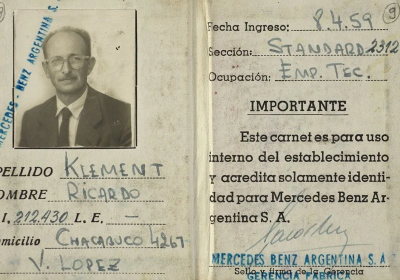 Eichmann's Argentinean worker's I.D. for Mercedes-Benz, issued in the name of Ricardo Klement