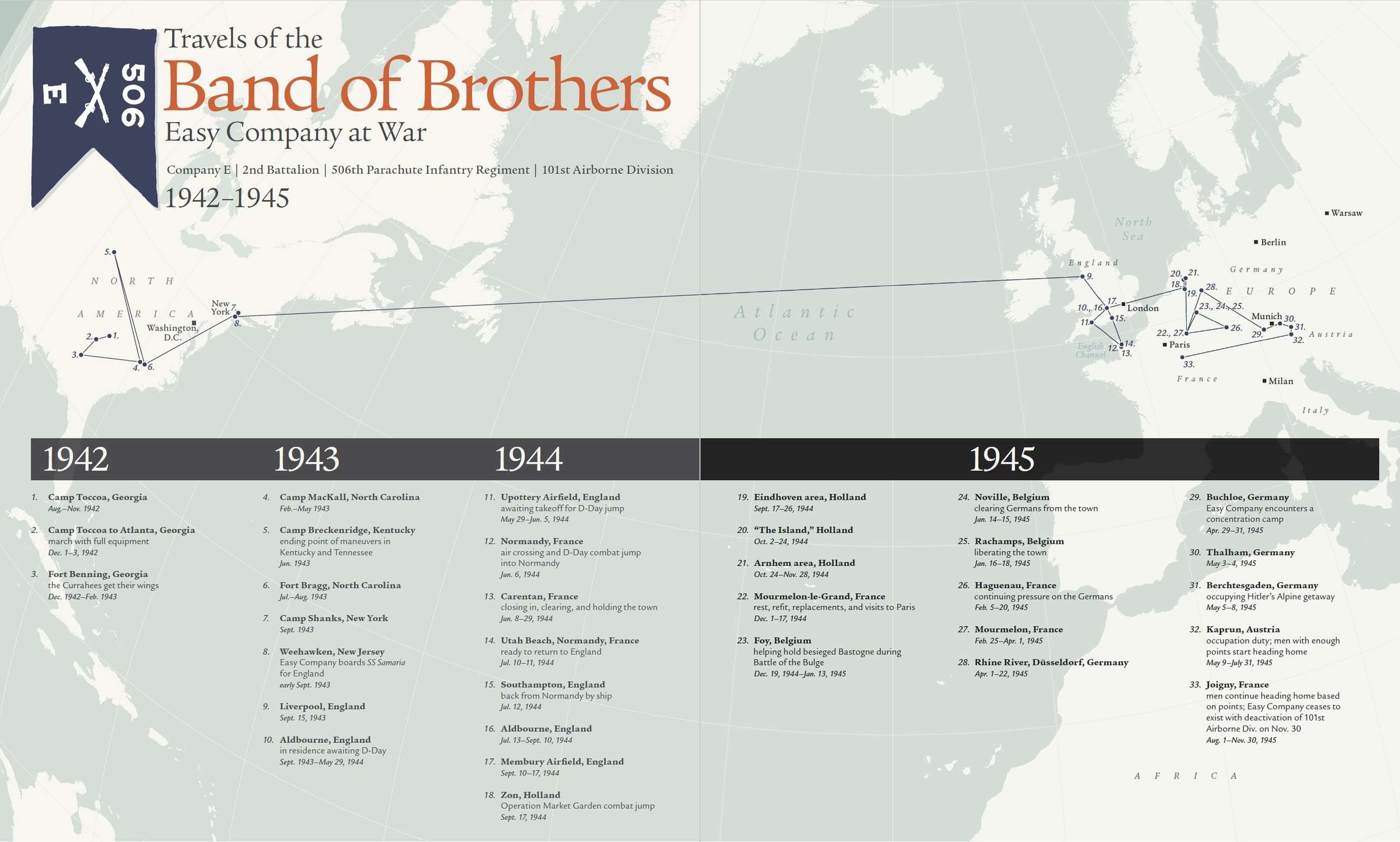 Easy Company would go on to become one of the most well-known units of World War II, in no small part due to the HBO miniseries 'Band of Brothers' and its precursor, the book of the same name by Stephen Ambrose. Their journey would take them from the mosquito-riddled backwoods of Georgia right the way through Europe until they reached Hitler's 'Eagle's Nest' at Berchtesgaden in the Bavarian Alps. This journey would see them at the forefront of some of the most decisive and bloody battles in Western Europe during the war. This is the story of part of that journey