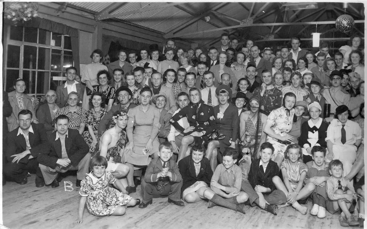 Campers and staff at Pontin's Holiday Camp, Kings Ash, Paignton, on August 25 1938, prior to a Saturday night dance.