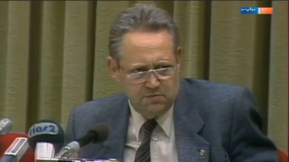 At a press conference on 09.11.1989, the Berlin SED leader Günter Schabowski initiates the fall of the Wall with a faux pas.