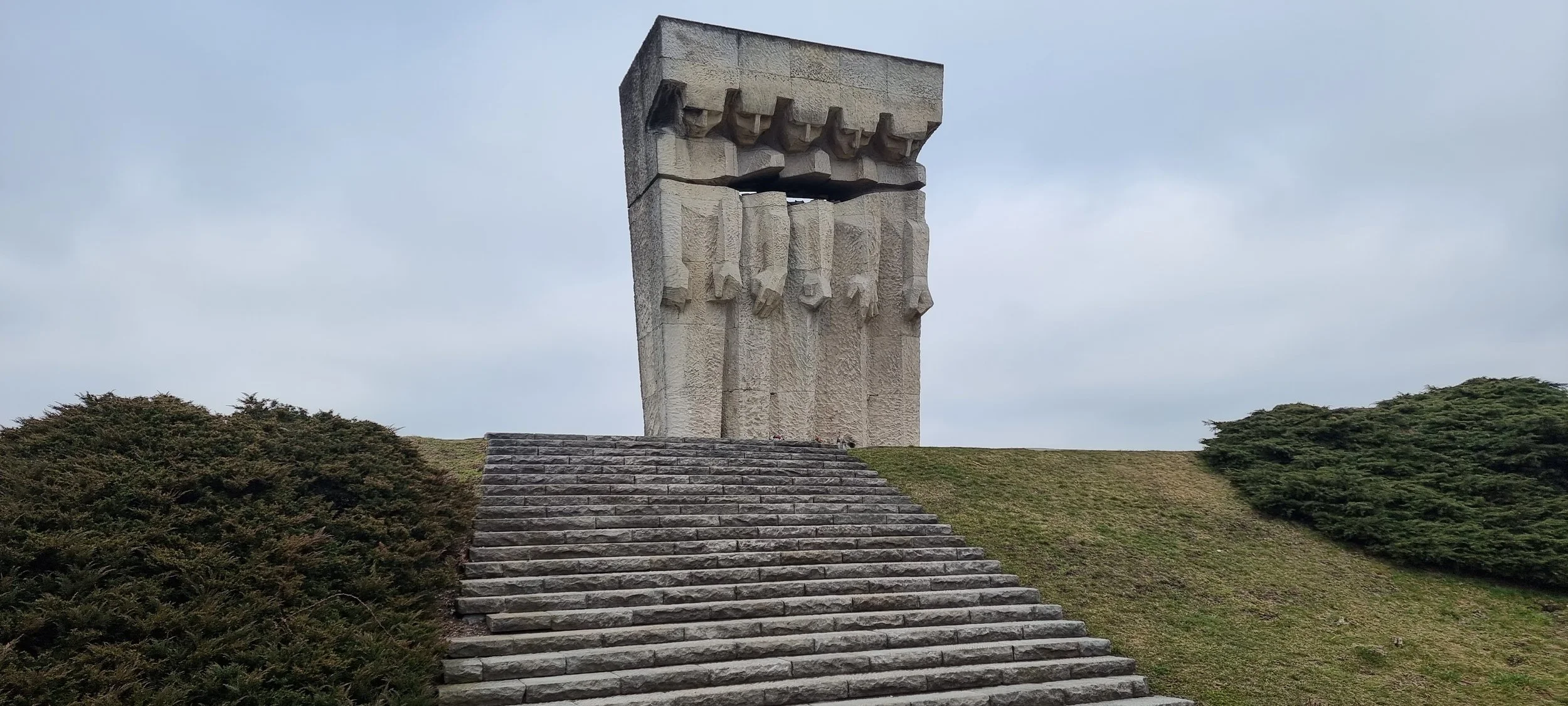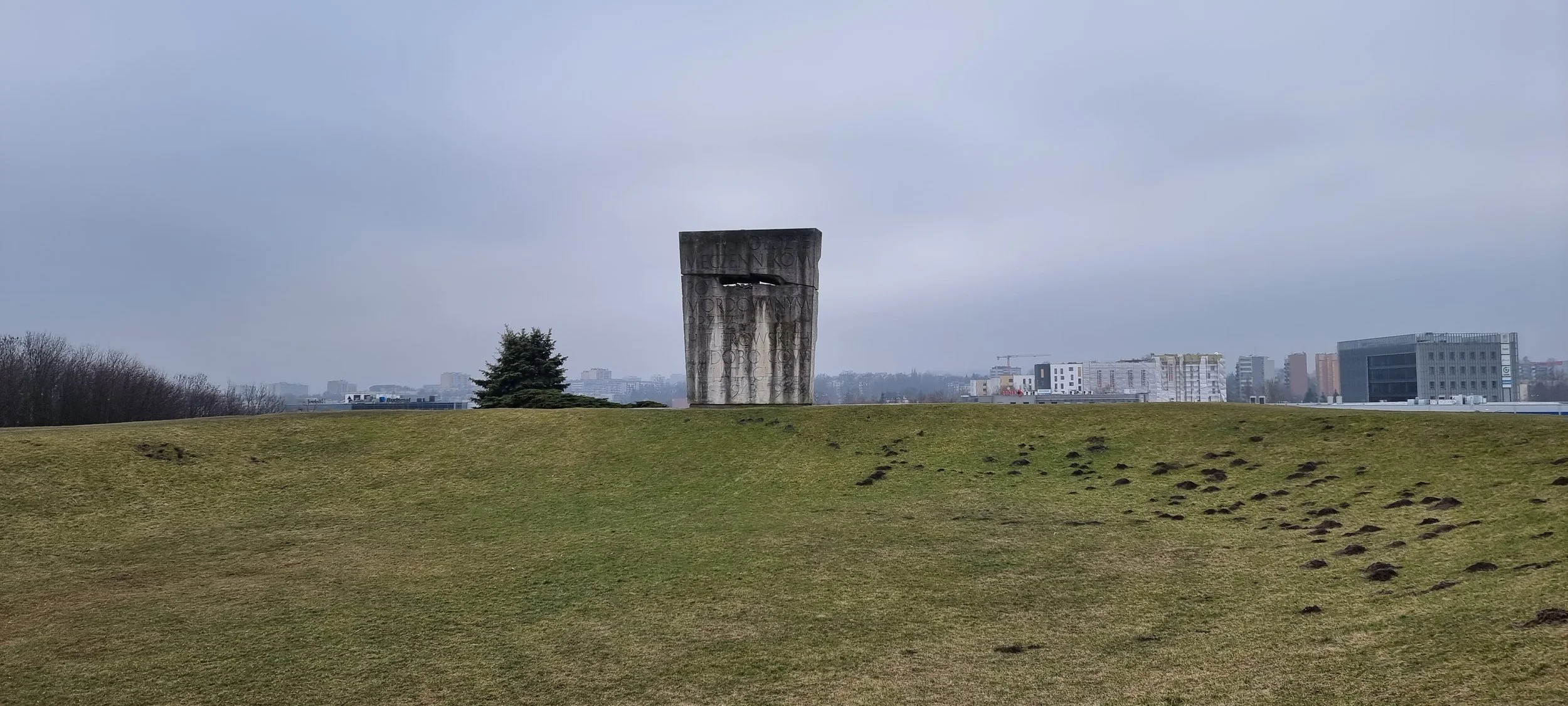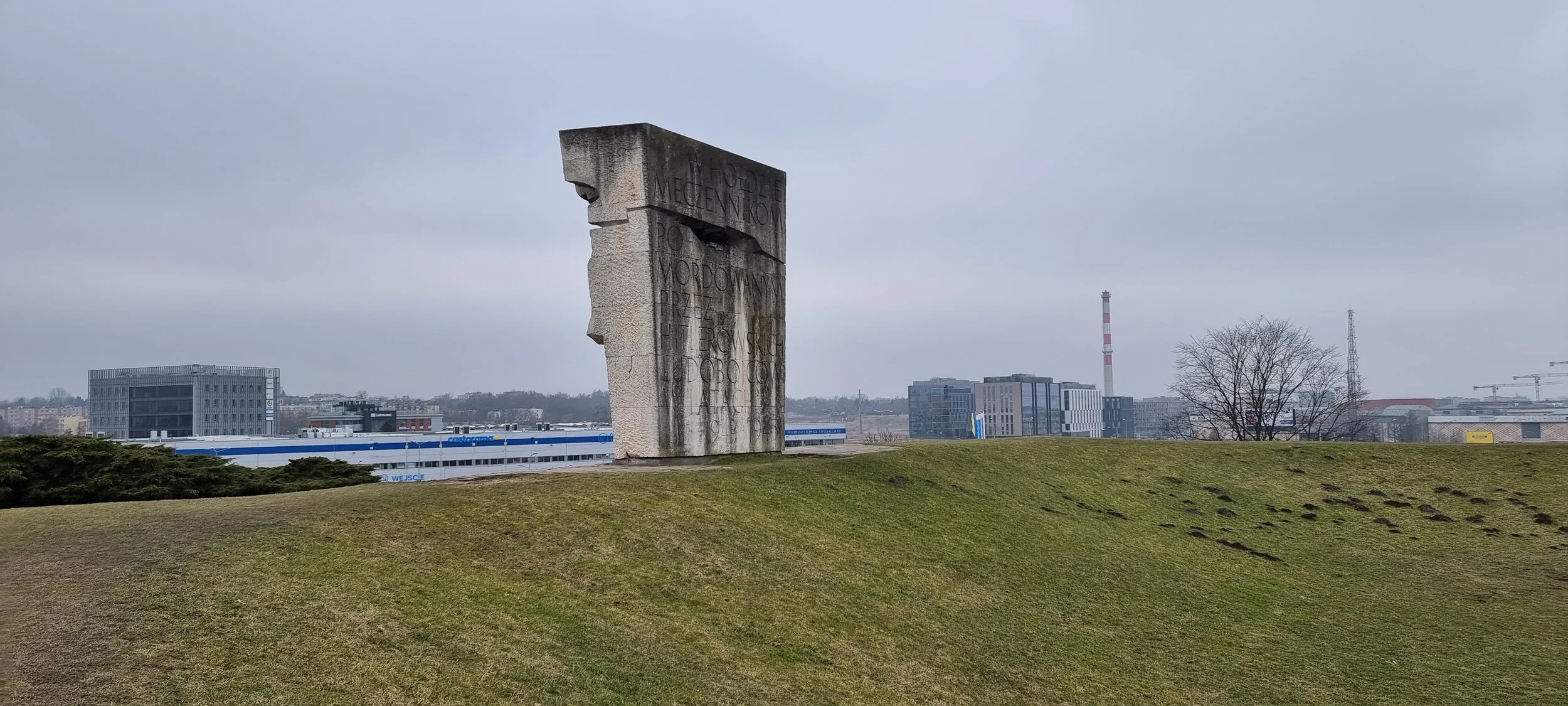After the war, a number of memorials were erected on the ”C Dolek” hill. The most famous architectural composition, established in 1964, is called ‘Pomnik Ofiar Faszyzmu’ (“Monument against Fascism”). Huge inscription in Polish on the back of the monument states: (” In memory of the martyrs killed during the German genocide of 1943-1945 ‘). In addition to a large-scale monument, another three memorials have been erected at the ”C Dolek” mass execution site. One of them, a large stone obelisk, was erected by the Jewish community of Krakow to perpetuate the memory of all the Jewish victims of Plaszow. The second one, a stone slab, installed in 2000, pays tribute to the women from Hungary who arrived in Plaszow before being sent to find death in the Auschwitz death camp. And the newest monument was installed in 2012 and honors the memory of the soldiers of the Polish army and resistance, who were also killed in the Plaszow camp (Arbeitslager Plaszow) during the German occupation.