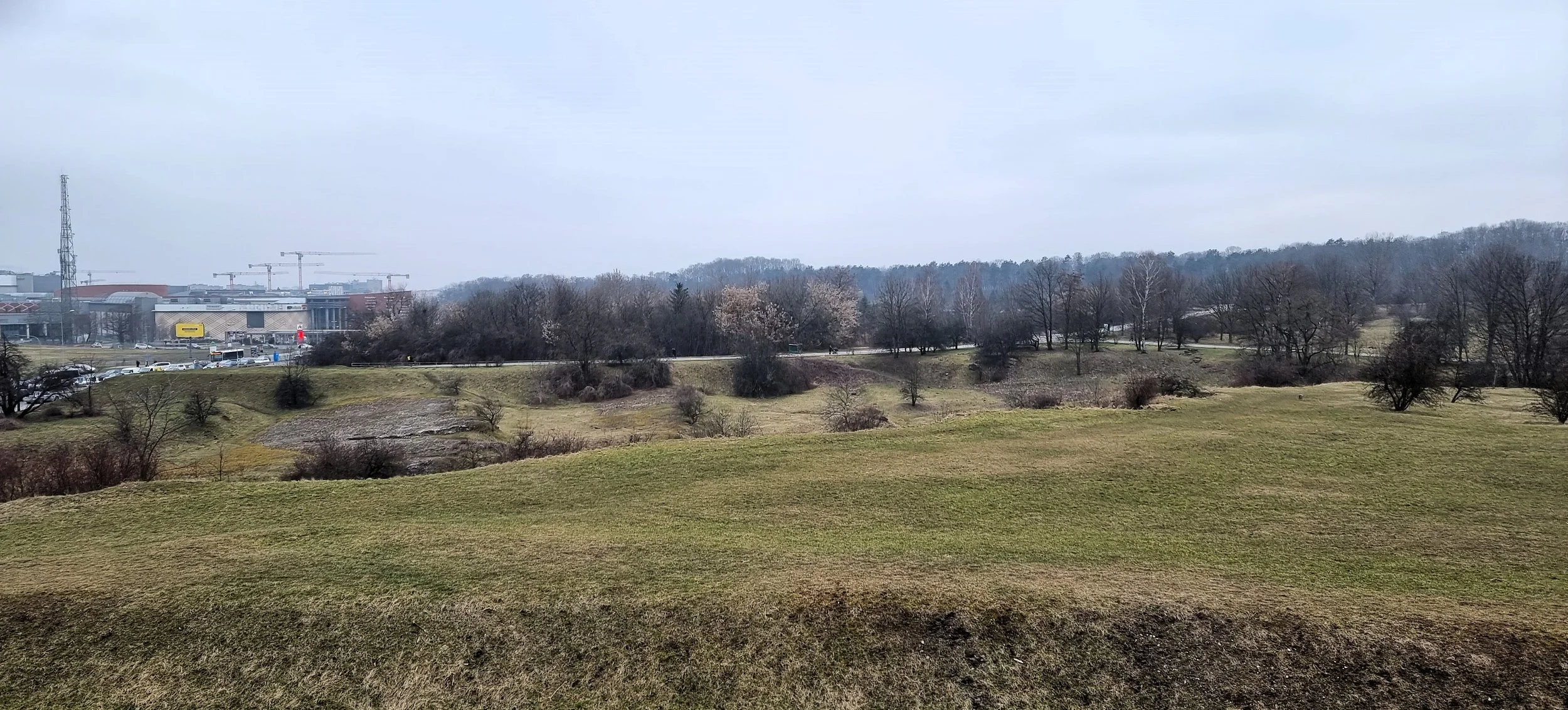 Looking across towards the Quarry -The presence of a quarry was one of the reasons for choosing a place to create a Plaszow labor camp in 1942. A number of the prisoners were occupied here, and the daily route through the main gate to bypass was an exhausting routine of work. Also, the SS and Kapo guards selected to monitor prisoners (often among criminals) often used to beat prisoners, and an unknown number of victims were killed right here, shot, or dropped down from abrupt cliffs of the quarry. The work was mainly occupied by the Poles and political prisoners, and the working day was divided into two shifts.