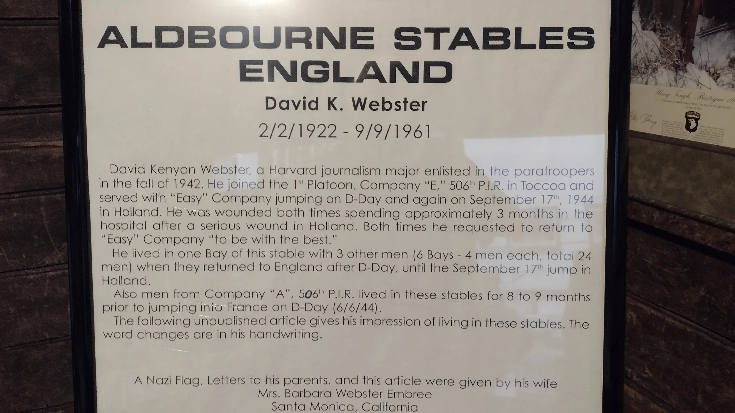 The Aldbourne stables were carefully dismantled and shipped over to toccoa to form part of the Museum.