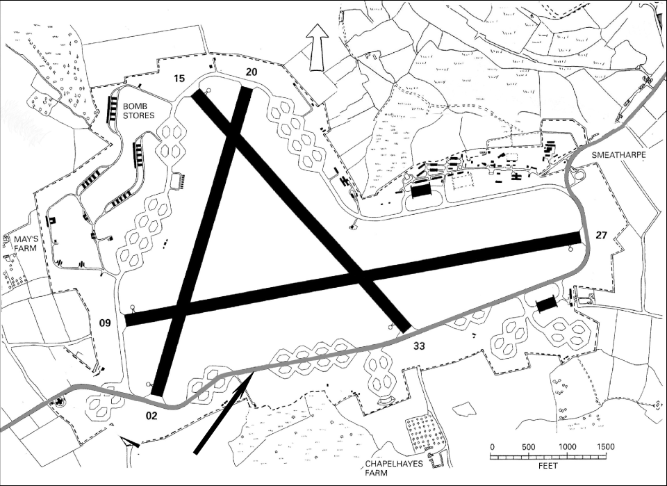 A C-47 returns many years later to Upottery and a map showing the layout of the Airfield including the supporting buildings.